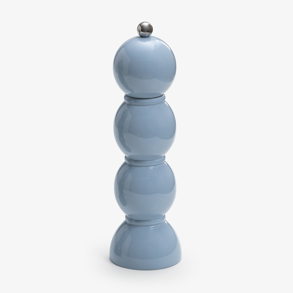 In ihrer skulpturalen Form erinnern diese Mühlen von Addison Ross an balusterartige Säulen. Der Korpus besteht aus einer Reihe aufeinandergesetzter Kugeln, die durch eine hochglänzende Lackierung in zehn ausdrucksstarken Farben veredelt werden.