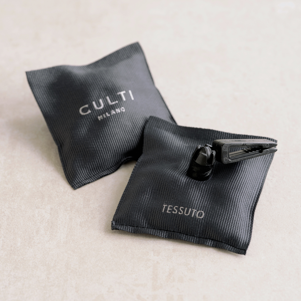 Nicht jedes Auto riecht von sich aus nach poliertem Holz und Connolly-Leder. Diese kleinen Duftsäckchen bringen die feinen Düfte von Culti in den eigenen Wagen: Mittels eines Clips werden sie einfach an einer Lüftungsdüse befestigt und geben dann langsam die sorgfältig abgestimmte Aromenmischung an die Innenraumluft – nach dem Öffnen etwa 2 Monate lang.