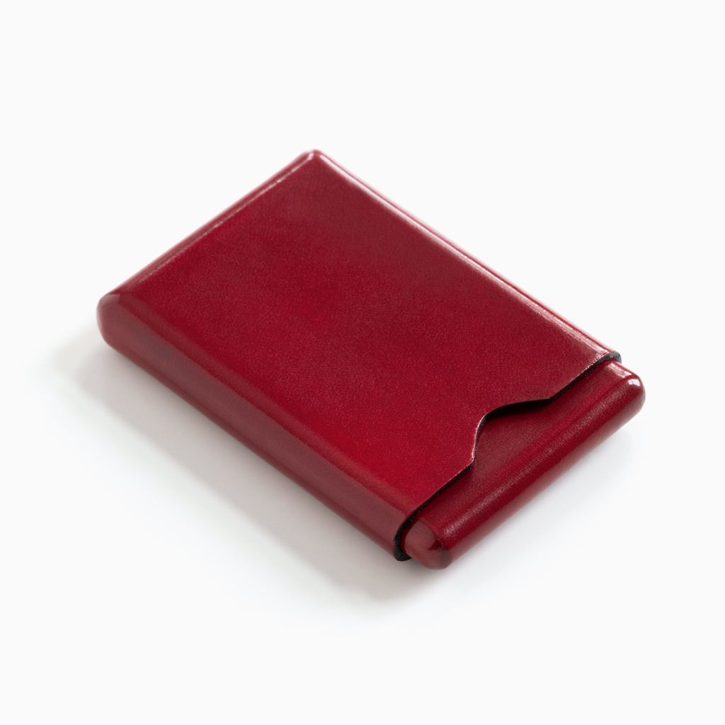 Im Gegensatz zu Visitenkartenetuis aus Metall oder Plastik hat man dieses Lederetui gerne immer dabei. Es liegt angenehm in der Hand und stört auch nicht in der Hosentasche. Und wenn man einmal nur das Nötigste dabei haben will, paßt auch eine Scheck- oder Kreditkarte hinein. Das zweiteilige Etui wird in einem kleinen lederverarbeitenden Betrieb bei Florenz hergestellt. Innen- und Außenteil werden jeweils aus einem Stück Leder geformt.