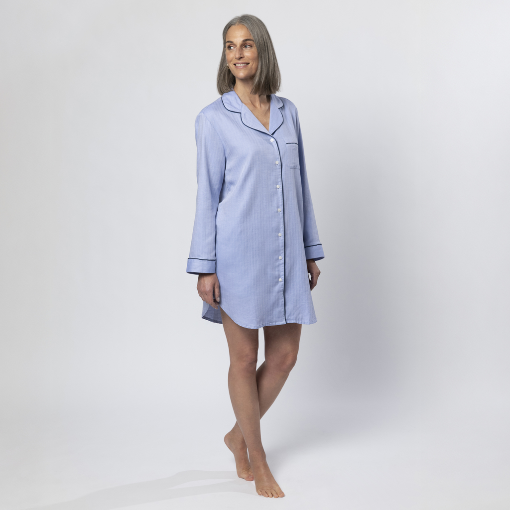 Mit dem klassischen Nachthemd aus Royal Twill – einer edlen, dicht gewebten Baumwolle mit feiner Fischgratstruktur – machen Sie auch außerhalb des Schlafzimmers eine gute Figur. Die