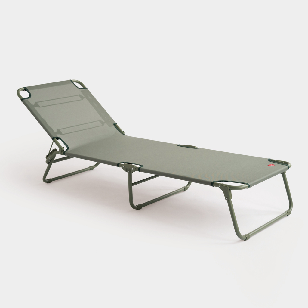 Das Gestell besteht wie gehabt aus leichtem, extrem stabilem Aluminium. Der Bezug ist wie immer aus wetter- und UV-beständigem Textilene (70 % Polyacryl, 30 % Polyethylen) gefertigt. Neu in dieser für uns aufgelegten Sonderedition: Beide Elemente sind farblich Ton in Ton aufeinander abgestimmt und daher von betont modischer Ausstrahlung. Das Gestell ist mit einer kratzfesten Pulverbeschichtung versehen, sodass diese farbigen Varianten den Modellen mit blankem Aluminium in puncto Dauerhaftigkeit in nichts nachstehen. Klappbares Gestell für leichten Transport und platzsparende Unterbringung, verstellbares Kopfteil für bequemes Liegen und Sitzen.