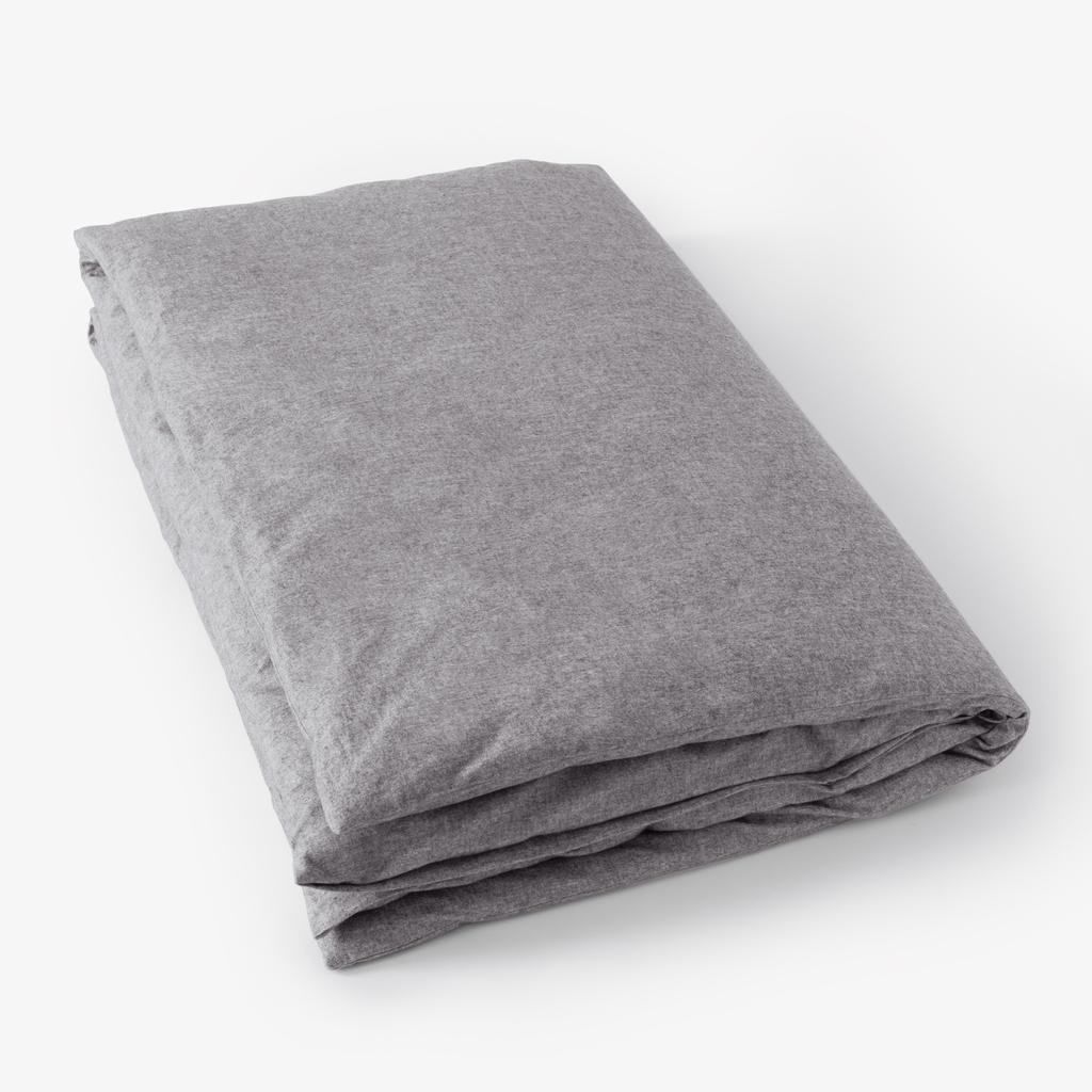 Bettwäsche aus Baumwollflanell fühlt sich mit ihrer weichen, angerauten Oberfläche herrlich warm an – angenehmer geht es kaum, wenn es draußen kalt und ungemütlich wird. Durch das Aufrauen wärmt das Gewebe nicht nur besser, sondern kann auch mehr Feuchtigkeit aufnehmen und gleicht die Temperatur besser aus. Der Flanell für unsere Bettwäsche wird aus feinem, weichem Baumwollgarn zu einem besonders dichten Gewebe verarbeitet, das angenehm leicht und anschmiegsam ist. Seine lebendige grau melierte Oberfläche erhält das Material durch das Verweben von schwarzen sowie weißen Kett- und Schussfäden.