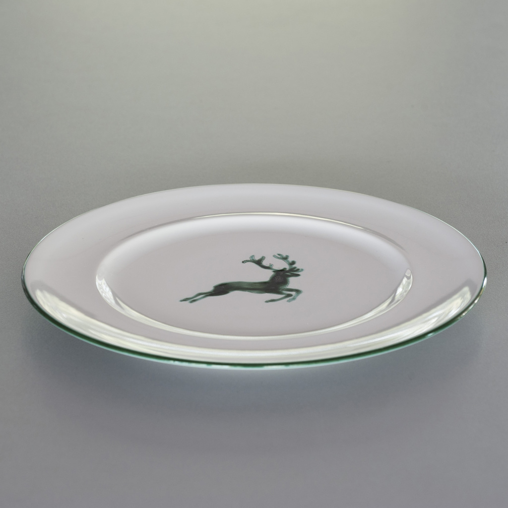 Das Dekor Grüner Hirsch gibt es seit Anfang der 1950er Jahre im Programm der Gmundner Keramik aus Gmunden am Traunsee im Salzkammergut ist ein ländlich-eleganter Klasssiker. Es wurde seinerzeit für das weltberühmte Hotel "Goldener Hirsch" in Salzburg kreiert und später aufgrund großer Nachfrage für den Handel freigegeben. Wir bieten die Teller in der seit 2007 lieferbaren "Gourmet-Form" mit "Fahne" (einem breiten Rand) an. Alle Teile werden aufwendig von Hand bemalt und entstehen auch sonst zu 90% in Handarbeit - vom Töpfern bis zum Brennen. Keramik. Spülmaschinenfest und mikrowellentauglich.