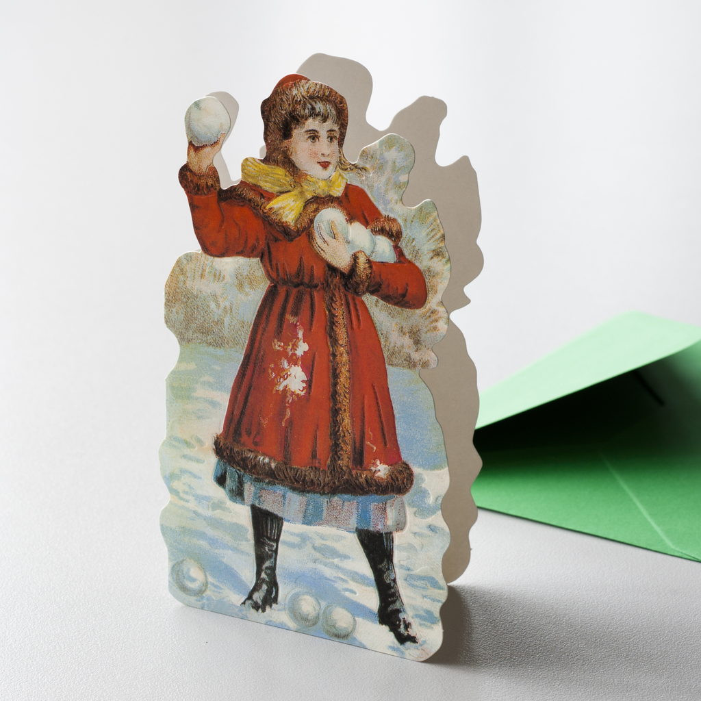Grußkarte Schneeballwerferin