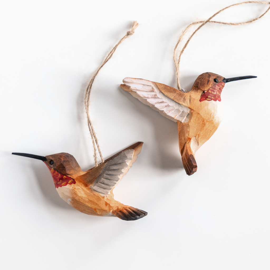 Handgeschnitzter Vogelanhänger Rotrücken-Zimtelfe 2er-Set