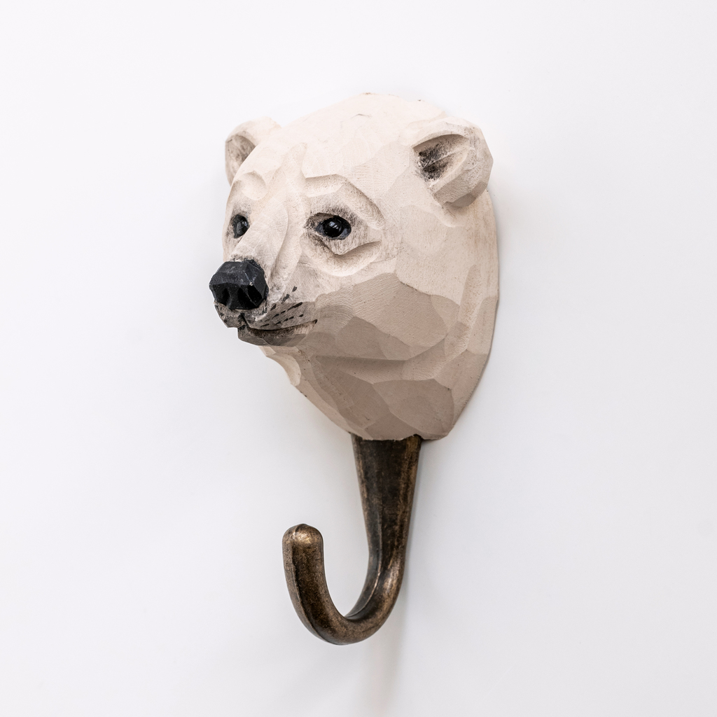 Diese Kleiderhaken bringen tierische Abwechslung an die Wand – und vermitteln wie nebenbei, welche und vor allem wessen Jacke auf welchen Haken gehört. Die Tierköpfe sind von Hand aus Holz geschnitzt und dann mit wasserbasierter Acrylfarbe lackiert: nuancenreich und fein abgestimmt, so dass ein erstaunlich naturalistischer Eindruck entsteht und sich keine zwei Kühe und keine zwei Esel gleichen. Der eigentliche Haken ist aus Metall und mit dem Tierkopf verschraubt. Zur Montage wird lediglich eine in die Wand versenkte Schraube benötigt: Die Haken werden einfach auf den herausstehenden Schraubenkopf aufgesetzt und arretiert.