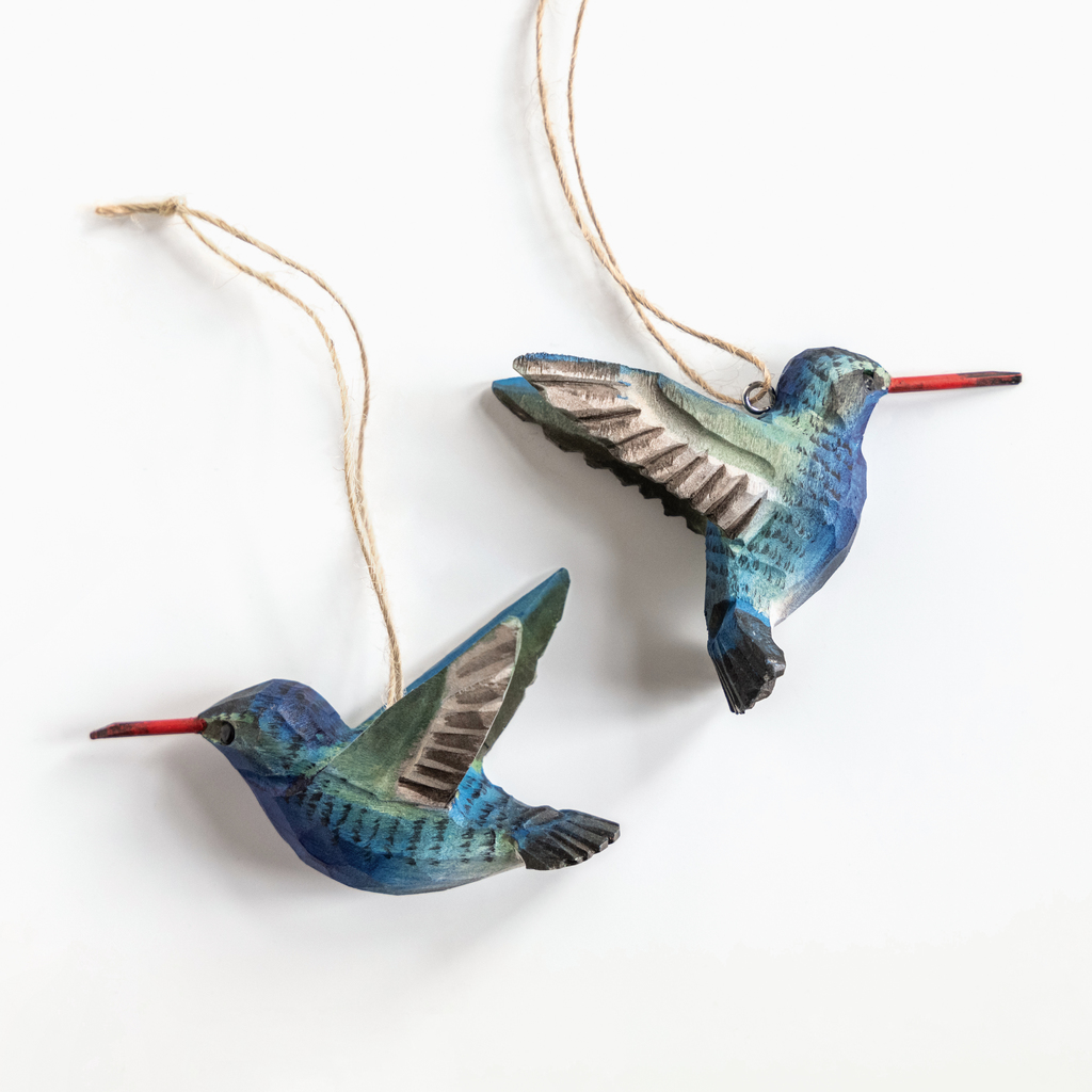 Handgeschnitzter Vogelanhänger Breitschnabelkolibri 2er-Set