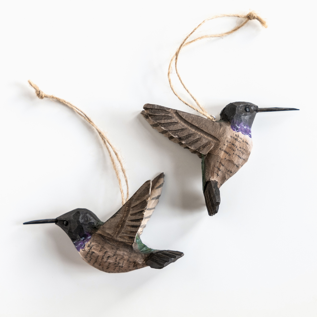 Handgeschnitzter Vogelanhänger Schwarzkinnkolibri 2er-Set