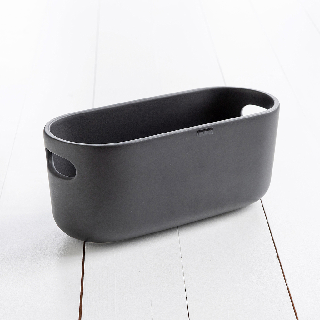 Selbstbewässernder Übertopf für Küchenkräuter: Die Kräutertöpfe stehen darin auf einer Kapillarmatte, die über mehrere Tage hinweg für sehr gleichmäßige Bewässerung sorgt. Wasserreservoir 0,5 Liter. Platz für bis zu 3 Kräutertöpfe. Mit 2 Tragegriffen. Kapillarmattenträger aus Kunststoff. Alle Teile außer der Kapillarmatte sind spülmaschinengeeignet. Ausgezeichnet mit dem Red Dot Design Award.