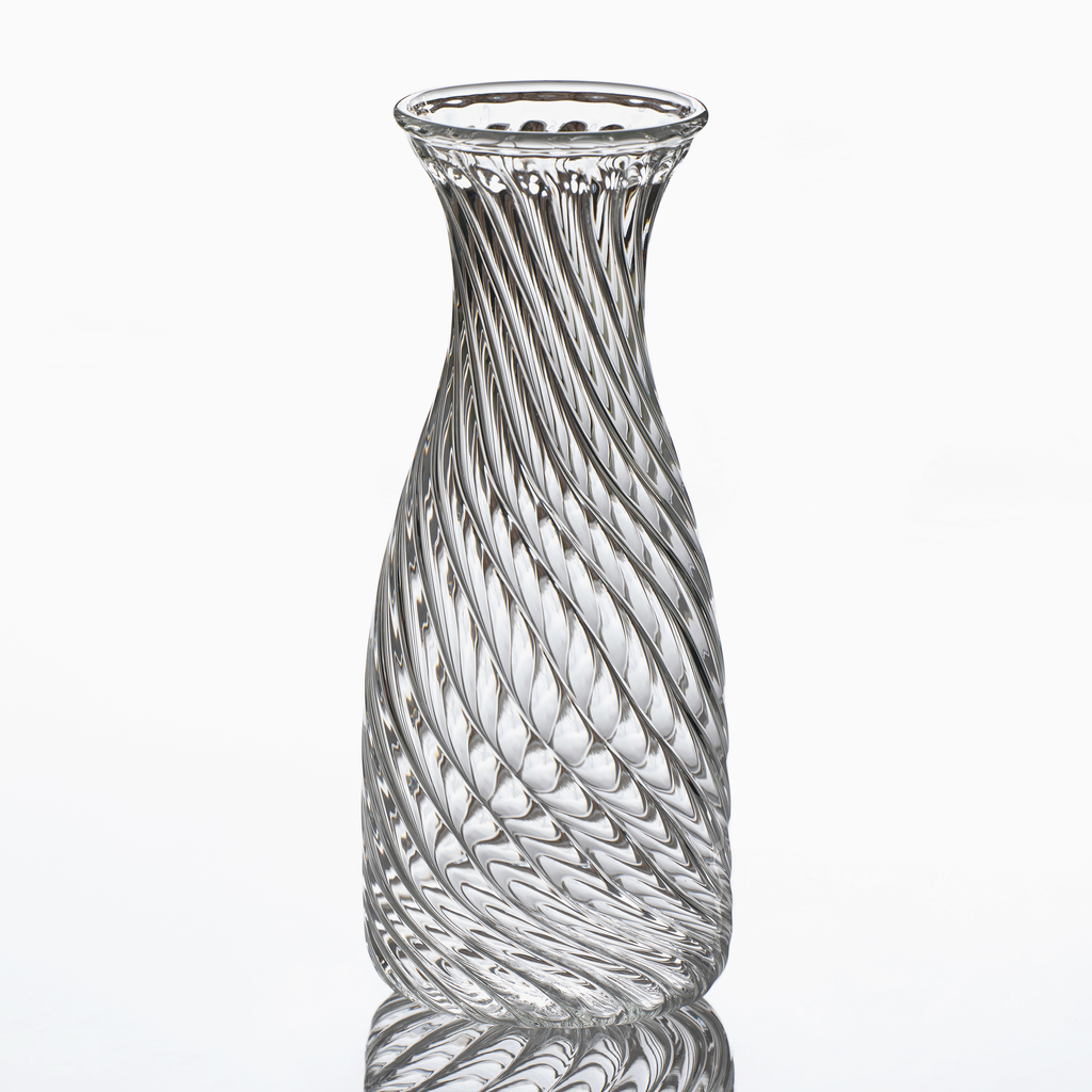 Meisterhafte italienische Glasmacherkunst vereint sich in dieser Karaffe mit durablem Borosilikatglas: Als Grundmaterial werden gezogene Glasstäbe verarbeitet, die mit der Glasmacherpfeife erhitzt und in die Form geblasen werden. So entsteht das innen wie außen tastbare Relief aus strudelförmigen gewundenen Rippen, das nicht nur für einen guten Griff, sondern auch für wunderschöne Lichtreflexe sorgt. Dass Borosilikatglas vor allem als hochbeanspruchtes Labormaterial in der chemischen Industrie zum Einsatz kommt, bewährt sich auch im Haushalt: Es ist äußerst bruchfest bei geringer Materialstärke, hitzebeständig und spülmaschinengeeignet.