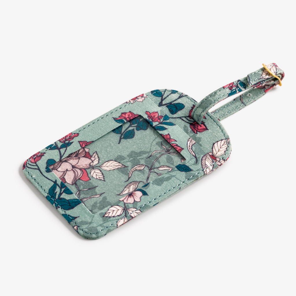 Sie suchen mal wieder Ihren Koffer? Diese Gepäckanhänger besitzen dank ihrem floralen Muster einen hohem Wiedererkennungswert an der Gepäckausgabe. Bezug aus 100 % Baumwolle mit Blumen-Alloverprint, weiches Velours-Futter, Riemchen mit Messingschnalle. 11,5 x 7 cm, Kunststofffenster 6,8 x 4,7 cm.