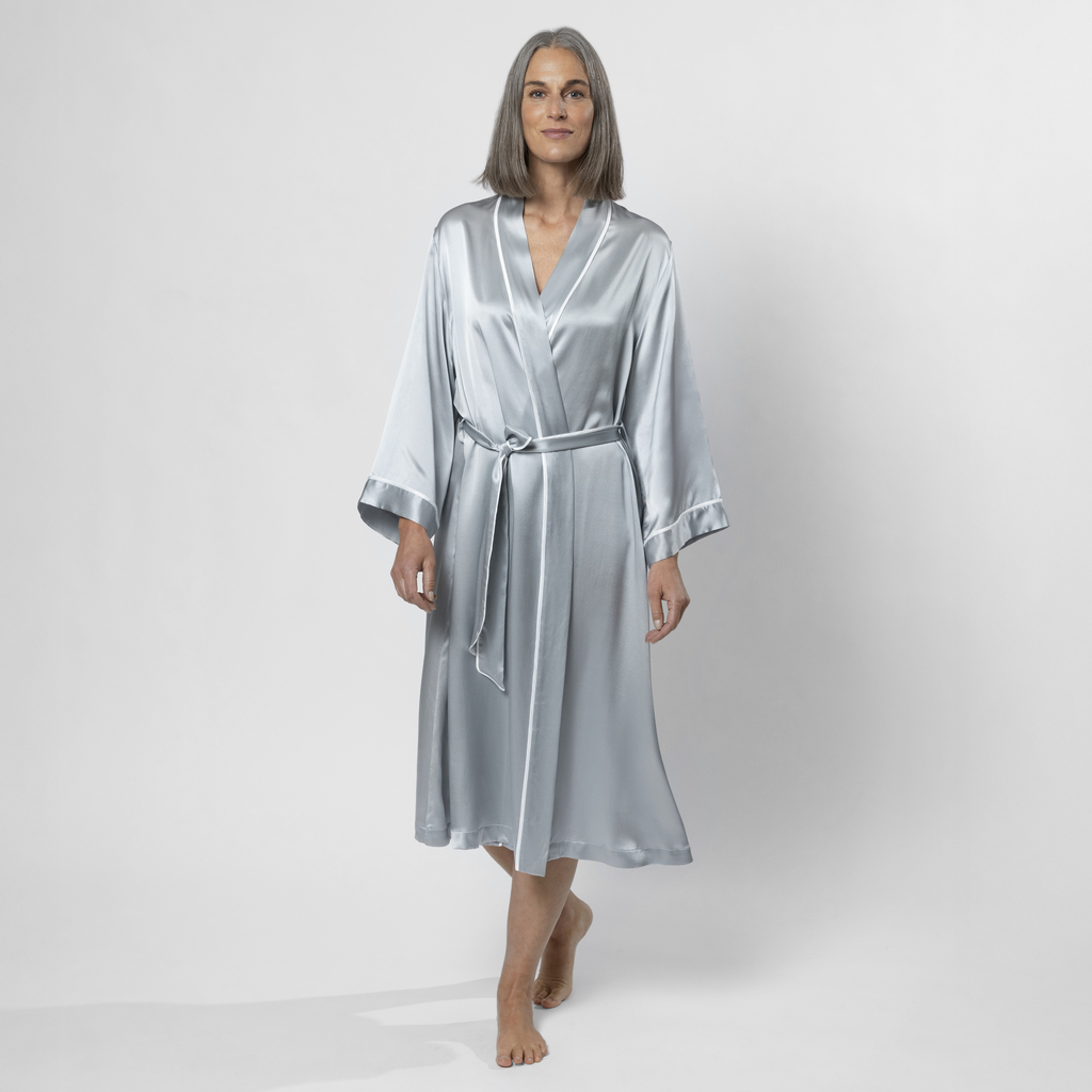 Morgenmantel aus Seide Platingrau Gr. S / M