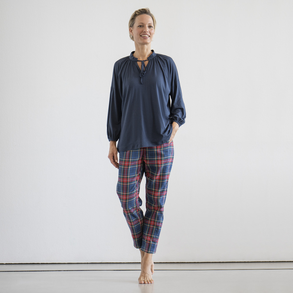 Romantisch-verspieltes Pyjamashirt mit Stehkragen, Schluppe und gerafften Details an Ausschnitt und Ärmeln.