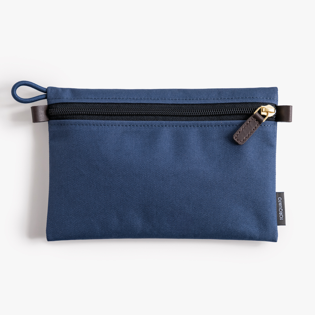 Ideal für alle Kleinteile, die sonst in Rucksäcken oder großen Taschen verloren gehen: In diesen flachen Täschchen lassen sich Ladekabel, Kopfhörer, Stifte, Notizbuch ordentlich und griffbereit verstauen. Zwei Lederschlaufen sowie eine elastische Textilgummi-Schlaufe ermöglichen das Anbringen eines Umhängebandes oder das Befestigen per Karabiner. Gefertigt aus robustem Poly Canvas – einem strapazierfähigen Polyestergewebe in klassischer Canvas-Bindung. Mit schwarzem Textilfutter und Reißverschluss mit Schieber aus Messing.