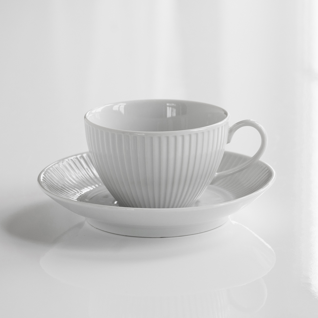 Pillivuyt Plissé Frühstückstasse mit Untertasse
