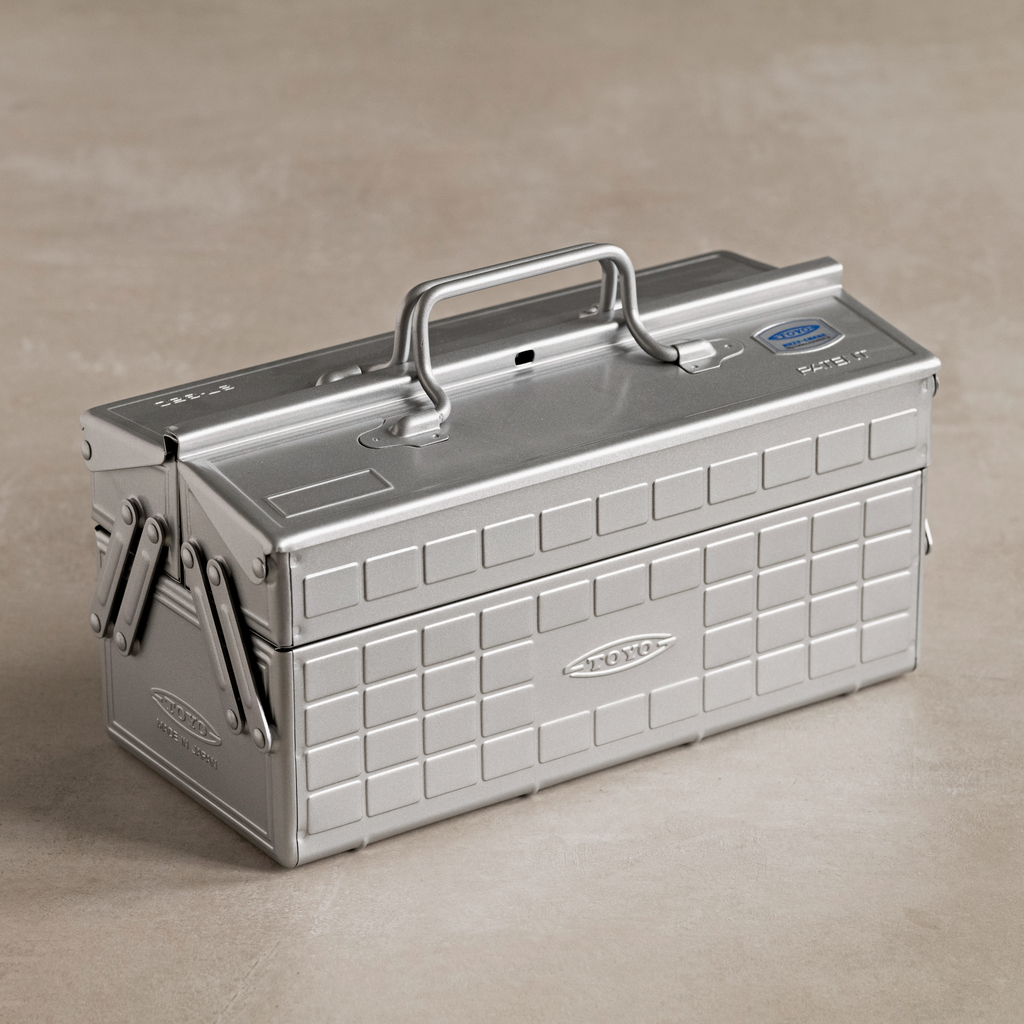 Aus Japan kommt nicht nur das beste Werkzeug, sondern auch die besten Werkzeugkästen. Nirgendwo legt man ein solches Augenmerk auf das Optimieren und Perfektionieren von Werkzeug und des entsprechenden Zubehörs wie im Land der aufgehenden Sonne. Diese Werkzeugkästen stammen von der 1969 in Osaka gegründeten Toyo Steel Company: Sie sind nahtlos und mit abgerundeten Ecken aus tiefgezogenem und pulverbeschichtetem Stahl gefertigt und trotz ihres geringen Gewichts extrem stabil.
