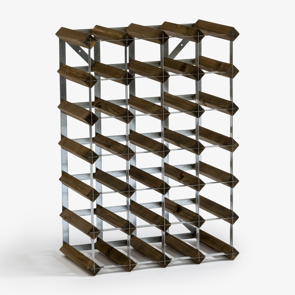 Mit diesem Regalsystem kann man seinen Weinkeller bei 12 Flaschen beginnen und unbegrenzt modular erweitern. Durch die Metallverstrebungen an Vorder- und Rückseite ist die Konstruktion sehr stabil – sogar, wenn man viele „Stockwerke“ übereinander baut. Die Module werden bereits fertig zusammengesetzt geliefert.