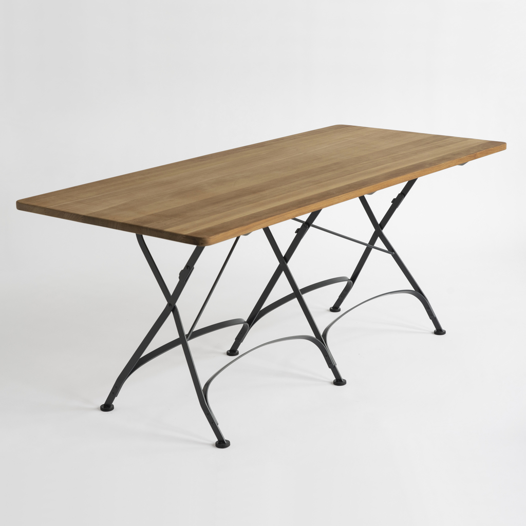 Diese Gartenmöbel suchen in Qualität und Ausstrahlung ihresgleichen. Sie stammen von den Weishäupl Werkstätten im Chiemgau, die seit 1969 Gartenausstattung und Sonnenschirme auf dem denkbar höchsten Niveau produzieren. Die dauerhaft wetterfesten Gestelle sind aus verzinktem, pulverbeschichtetem Band-und Rundstahl gefertigt und tragen massive Latten aus ebenfalls wetterfestem Teakholz allererster Güte, die mit Edelstahlschrauben befestigt sind – Ansatzpunkte für Flugrost sind also von vornherein ausgeschlossen. Da Teakholz wie kein anderes Holz wetter- und feuchtigkeitsbeständig ist, kann es dauerhaft unbehandelt bleiben, wird jedoch mit der Zeit silbergraue Patina entwickeln.